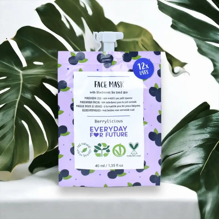 Oppdag vår nærende ansiktsmaske med antioksidantekstrakter fra blåbær, og dykk ned i en naturlig skjønnhetsopplevelse. Berrylicious Face Mask fra Everyday for future gir huden næring og styrker sliten hud. Blåbærekstraktet gir huden vitalitet.Formelen vår er en sann nytelse for huden din, og består av opptil 99 % naturlige ingredienser.